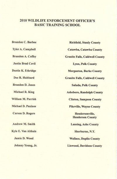 Welcome to the 2010 Wildlife Officer Recruit Class Pages! |